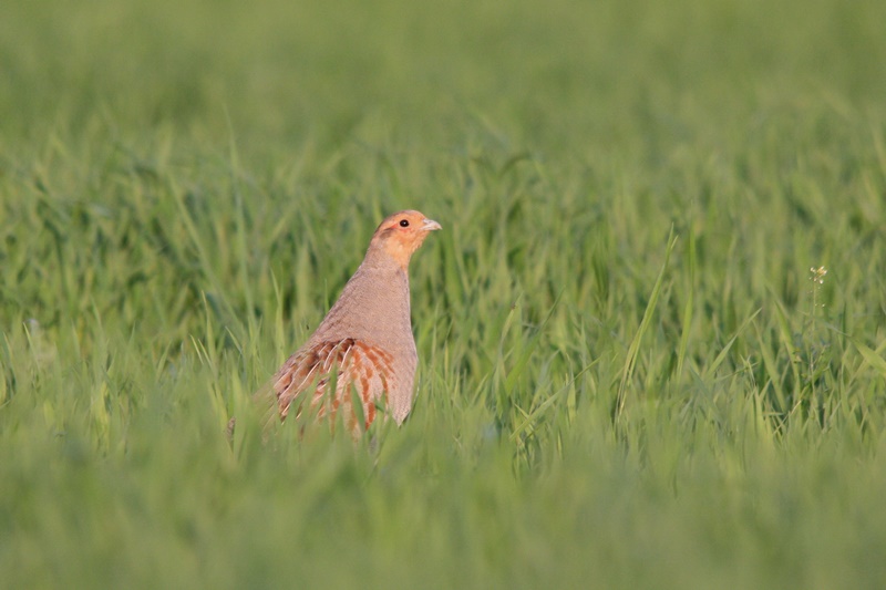 Nie tylko zima dziesiątkuje i ogranicza możliwości kuropatw. W sezonie lęgowym również nie kolorowo. A jak ma być inaczej, jeżeli swoje gniazda zakłada się bezpośrednio na ziemi. Wprawdzie kuropatwy ukrywają je w gąszczu roślin, trochę maskują, trochę kamuflują, trochę cudują… Jednak w świecie zwierząt, w świecie wyostrzonych zmysłów, w świecie wyczulonych nosów, w świecie bystrości i beznamiętnej systematyczności, dobra kryjówka, która by uszła uwadze czujnych, wszędobylskich, prześwietlających przestrzeń na wskroś licznych drapieżników graniczy chyba z cudem. I tu po raz kolejny „nadprzyrodzoność” i „superkurość” się potwierdza. Lista łasych na kuropatwie jaja i przychówek niesłychanie liczna: od wałęsających się psów i kotów, przez dziki, borsuki, lisy, po kruki, wrony, bociany, błotniaki i całą masę innych mieszkańców łąk i pól. Jak się przeciwstawić tym licznym drapieżnikom, często dużo większym, wyposażonym w ostre kły, dzioby i pazury mając do dyspozycji krępą sylwetkę, krótki dziobek i dosyć mocne nogi, jak przystało na kurę. Walka nie wchodzi w grę, tylko lawirowanie, czujność, zapobiegliwość, a czasami może i domieszka desperacji lub agresji. Trzeba mierzyć siły na zamiary i dostosowywać swój plan do zagrożenia. Co prawda natura trochę doposażyła kuropatwy, takim bonusem na starcie, w postaci możliwości licznego zniesienia. W przypadku nieuniknionych strat w lęgach duża ilość piskląt to większe nadzieje na dochowanie jakiejś części potomstwa. Kuropatwa składa przeważnie 15-17 jaj, a samice – rekordzistki nawet do 24. Dodatkowo jeżeli wszystko przepadnie i jakiś drapieżnik szybko splądruje gniazdo, kuropatwy są w stanie powtórzyć lęg.